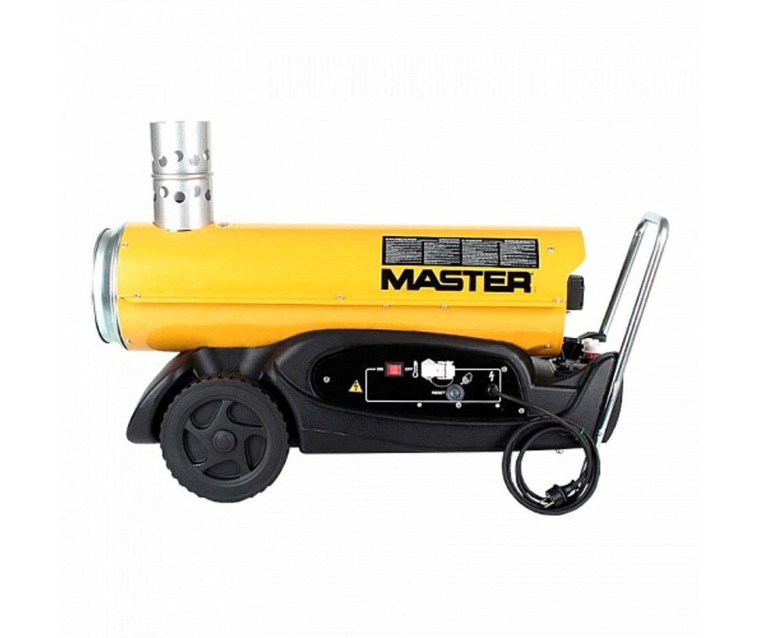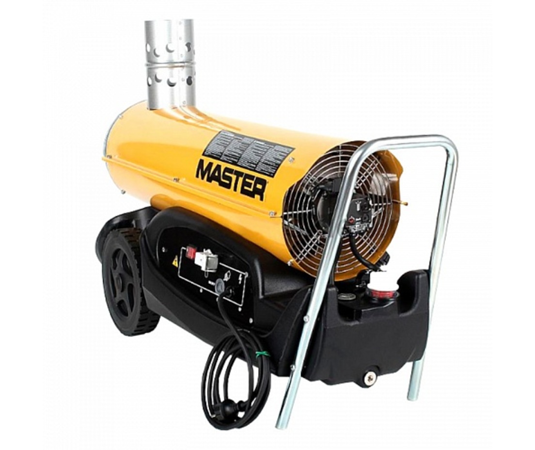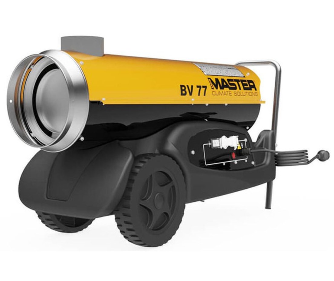 Двигатель «Master BV 77 E» работает на дизельном топливе и располагает эффективной защитой от перегрева, обеспечиваемой термостатом. Он расходует 1,67 литров в час и, благодаря баку ёмкостью в 36 литров, работает без дозаправки около 17-ти часов. Для безопасной эксплуатации на устройстве установлены система контроля пламени и защита от перегрева. Возможно подключение комнатного термостата - для автоматического поддержания определенной температуры.