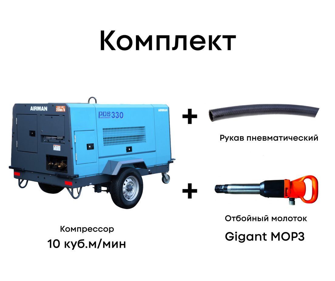 Комплект компрессор 10 куб.м/мин + рукав + отбойный молоток MOP3