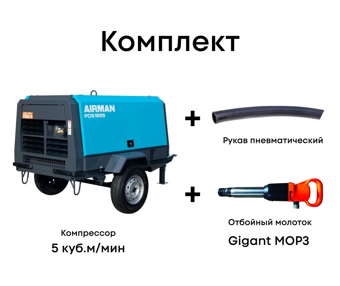 Комплект компрессор 5 куб.м/мин + рукав + отбойный молоток MOP3
