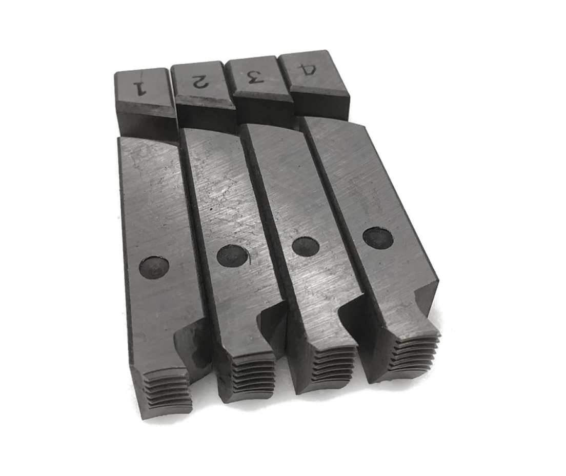 Комплект ножей PROMA 25000051 предназначен для резьбонарезного станка PROMA ZPM-50. Применяется для нарезания дюймовой резьбы в диапазоне от 1/2 до 3/4 дюймов. Комплект поставляется в индивидуальной пластиковой упаковке и состоит из 4 номерных ножей (гребенок), устанавливаемых в собственные посадочные места на станке.