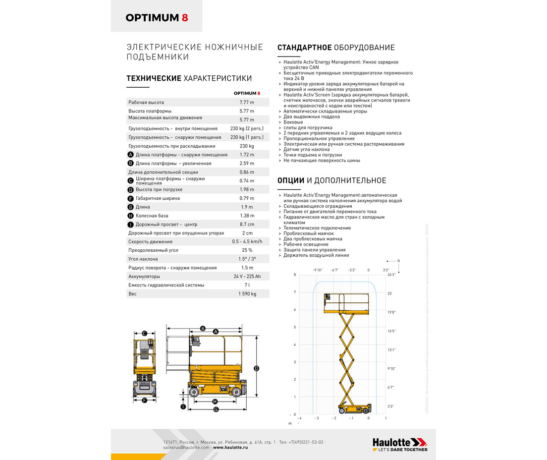 Ножничный электрический подъемник Haulotte OPTIMUM 8 (б/у) уцененный в продажу