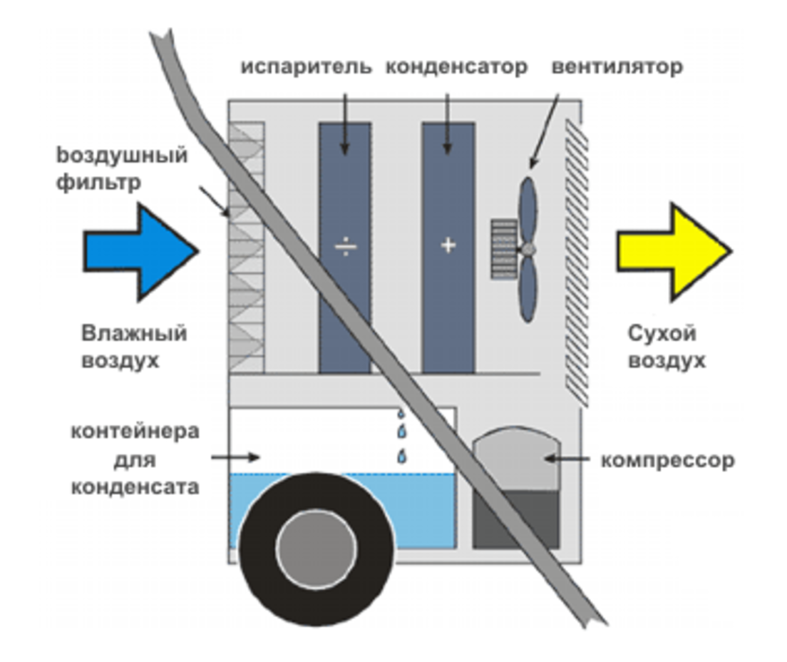 Устройство бладает возможностью непрерывной работы (24ч/сутки), поэтому использование конденсационного осушителя может ускорить проведение многих ремонтных и отделочных работ. Бак для сбора конденсата автоматически закрывается при заполнении. Осушитель также оборудован встроенным гигростатом и водяным насосом с максимальной высотой подъема 4м.