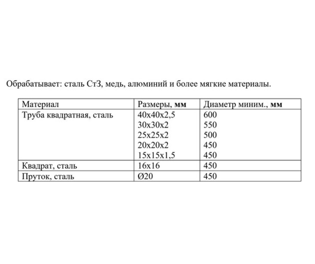 Ручной трубогиб Smart&Solid BendMax-300 представляет собой прочную конструкцию из стали твердостью выше 42-48 HRC. Благодаря универсальным роликам модель уверенно работает с квадратными трубами размером от 15х15 мм до 40х40 мм и толщиной стенки от 1.5 мм до 2.5 мм соответственно. Также допускается гибка профильных труб 50х30х2 мм при условии съема фиксирующих шайб с регулируемых колец боковых оправок. Оцинкованная поверхность порошковая окраска исключают образование коррозии на элементах трубогиба. Подшипники закрытого типа не нуждаются в смазке, что облегчает обслуживание агрегата.