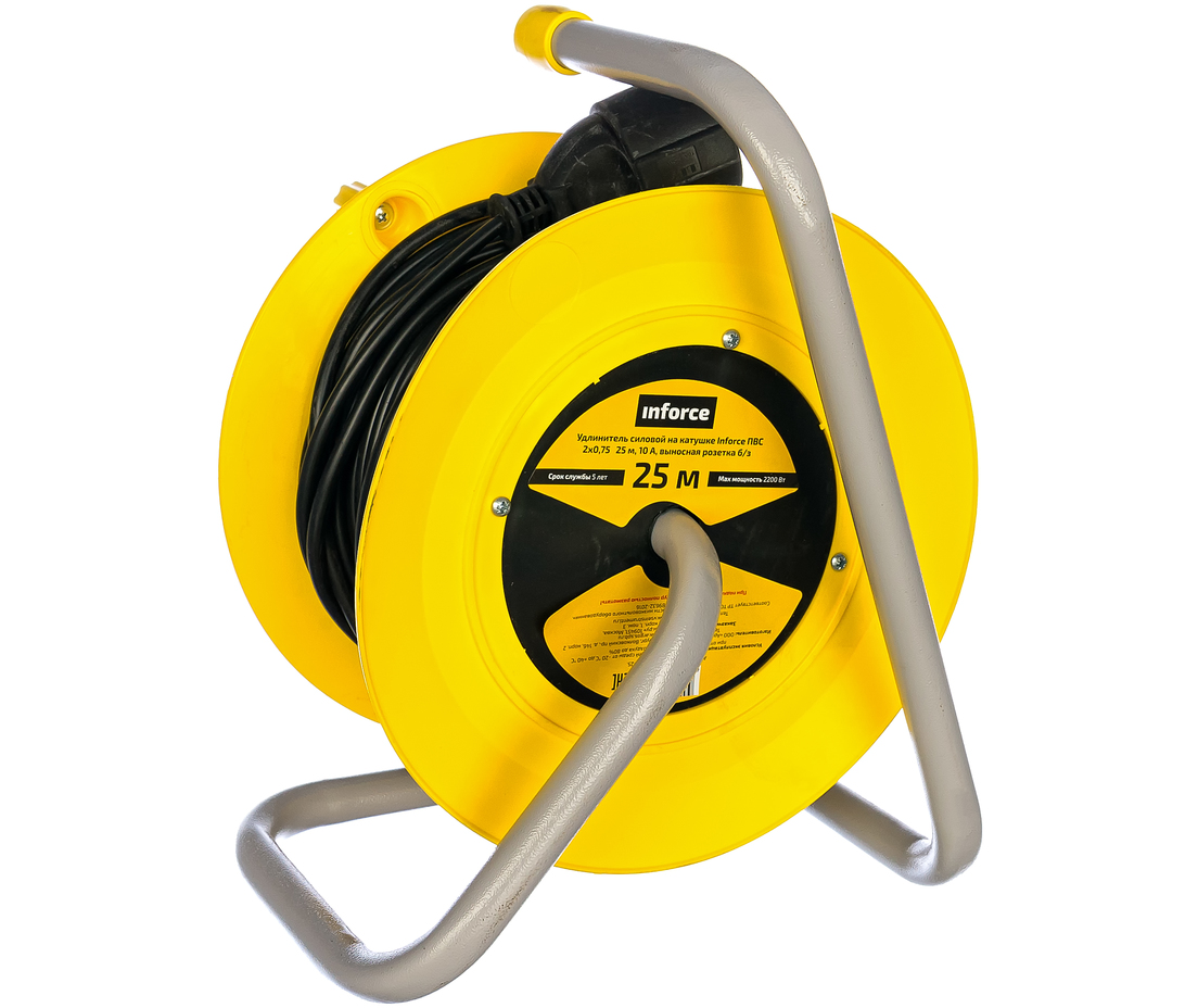 Силовой удлинитель на катушке Inforce К1-О-25 ПВС 2x0.75 25м, 6А, выносная розетка б/з 22025