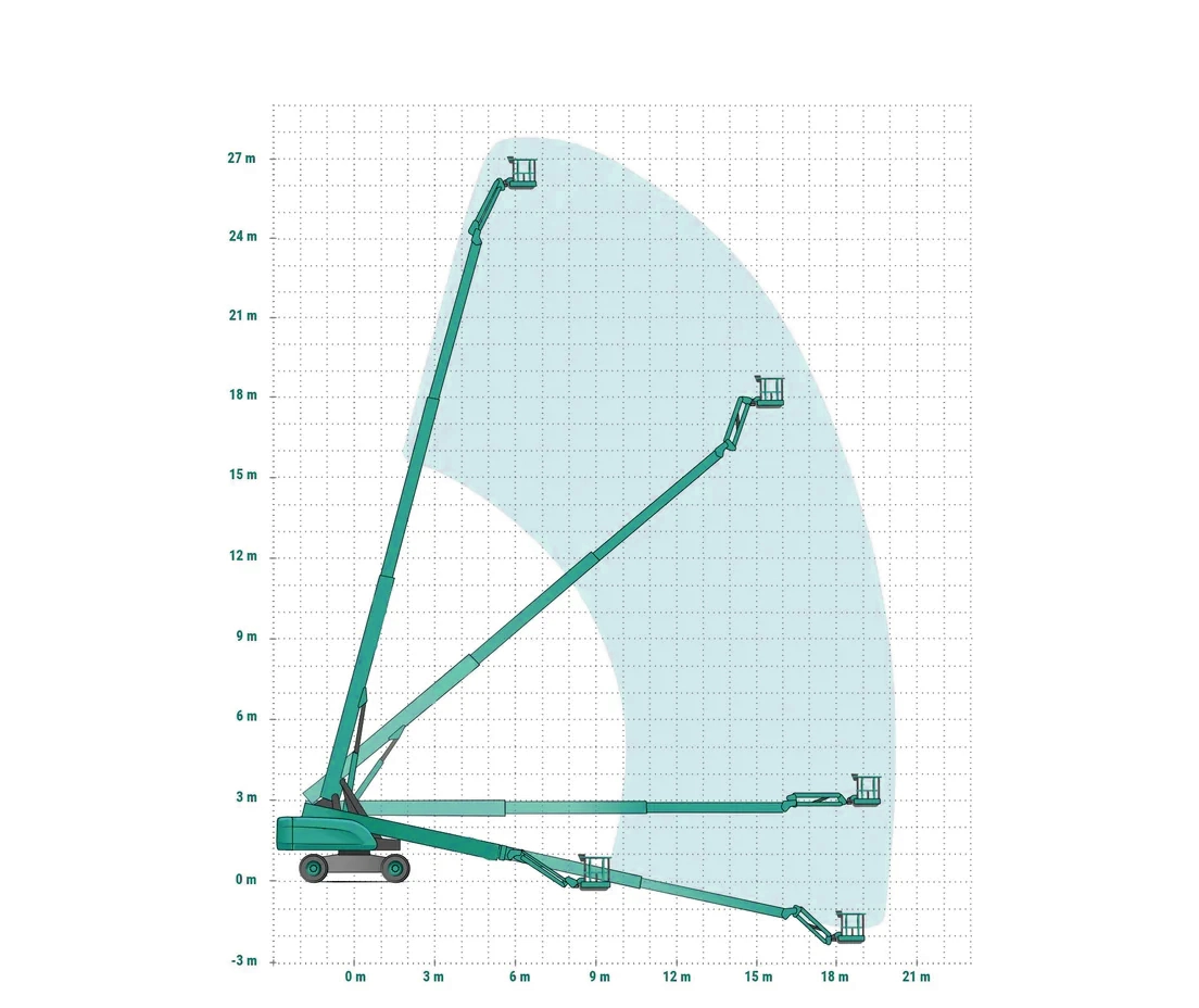 Уникальная конструкция стрелы телескопического подъёмника SUNWARD SWT28J решает вопрос не только эффективности работы техники, но и безопасности оператора. Благодаря мощному двигателю и системе полного привода, этот подъёмник способен справиться со сложными дорожными условиями, обеспечивая автоматическую амортизацию. Это особенно важно при работе на неровных или неустойчивых поверхностях. Благодаря грамотному дизайну, стрела крепится к основанию машины ближе к краю, что позволяет уменьшить площадь территории для поворота корпуса при поднятой стреле. Все важные агрегаты SWT28J легко доступны, что минимизирует время простоя при обслуживании. Подробные технические характеристики телескопического подъёмника SWT28J приведены в разделе "Презентация".