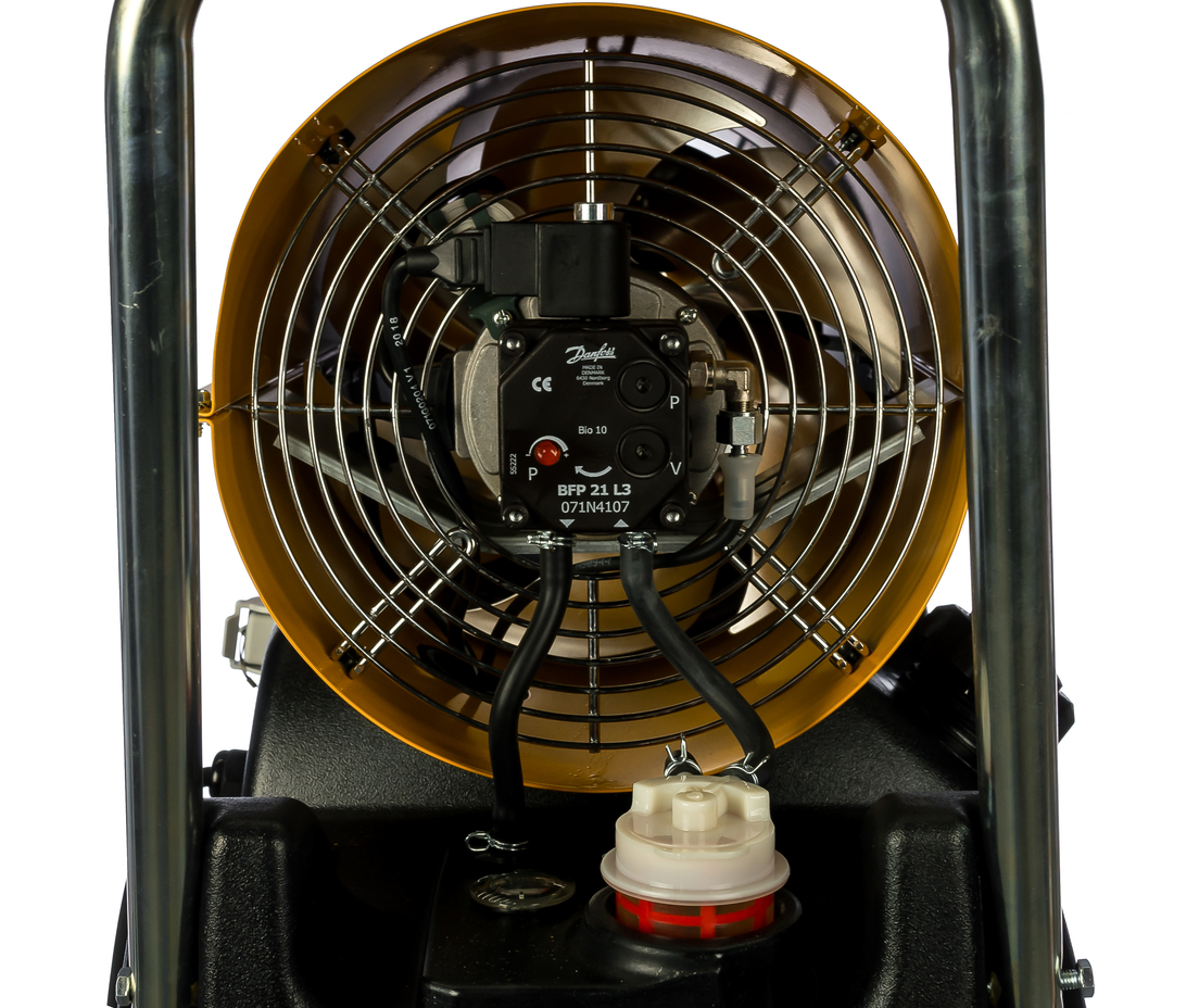 Модель оснащена термостатом, который регулирует вентиляцию пушки, тем самым защищая ее от перегрева. Он достаточно экономичен и за один час работы потребляет 4,5 литра топлива, обеспечивая выработку 1 550 кубометров горячего воздуха. Для автоматической работы пушки можно подключить комнатный термостат. Пушка располагает встроенным топливным баком ёмкостью 36 литров, чего достаточно для работы без дозаправки в течение 8-ми часов.