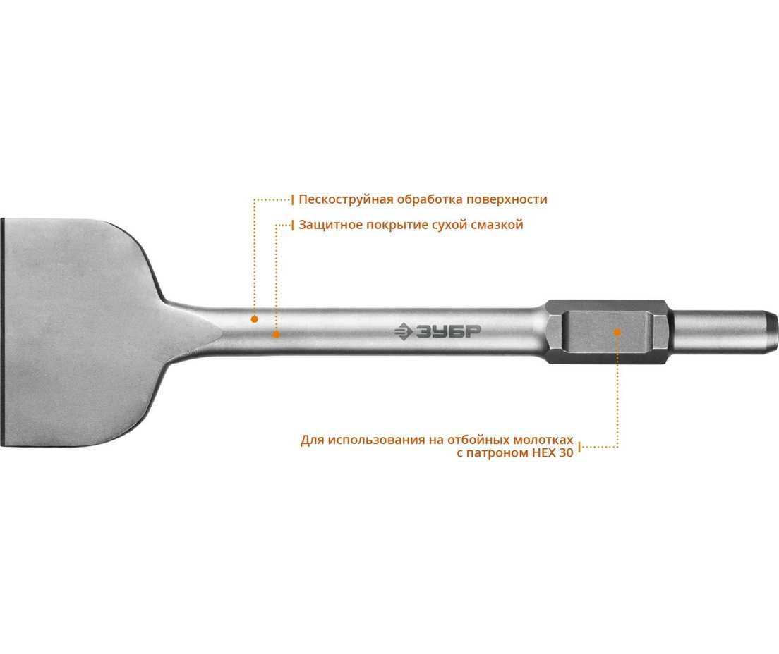 Зубило лопаточное БУРАН 75х400 мм, HEX 30 Зубр 29375-75-400