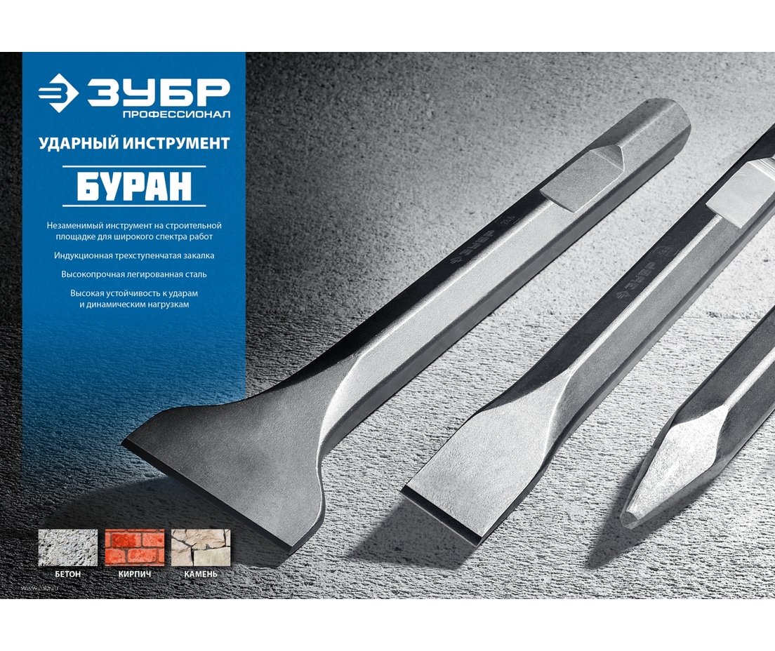 Зубило плоское 35х400 мм БУРАН HEX28 Зубр 29372-35-400
